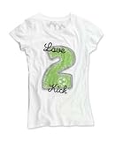 White, crew neck Love 2 tee, distressed screenprint applique and embroidered sport, form fitted, 100% cotton. WE RECOMMEND ORDERING ONE SIZE LARGER. Imported, Katz Exclusive!