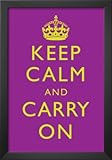 Professionally Framed Keep Calm and Carry On Motivational Purple Art Print Poster – 13×19 with Solid Black Wood Frame