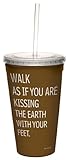 Tree-Free Greetings 80589 Inspiring Buddhist Quote Walk As If Artful Traveler Double-Walled Acrylic Cool Cup with Reusable Straw, 16-Ounce