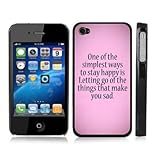 Cute Pink Inspirational Quote Snap-On Cover w/ Black Hard Carrying Case for iPhone 4/4S - Happiness Reviews