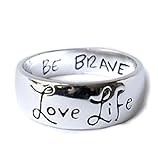 “What would life be like if we had no courage to attempt anything.” Let this sterling silver ring be a reminder for you to love the life you live, and never be afraid to follow your heart. Love Life Be Brave Ring Sterling Silver Wide Band feature: Sterling Silver, 925