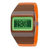 When you think of style, this is definitely a watch to look at. It has a plastic case and rubber band with a deployment clasp with push button. Featuring a green analog display with a quartz movement, this watch is built to last. Water resistant to 30m. You won’t want go anywhere without wearing this watch.