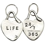 - Pewter heart keychain reads “Life” and “24/7/365″
